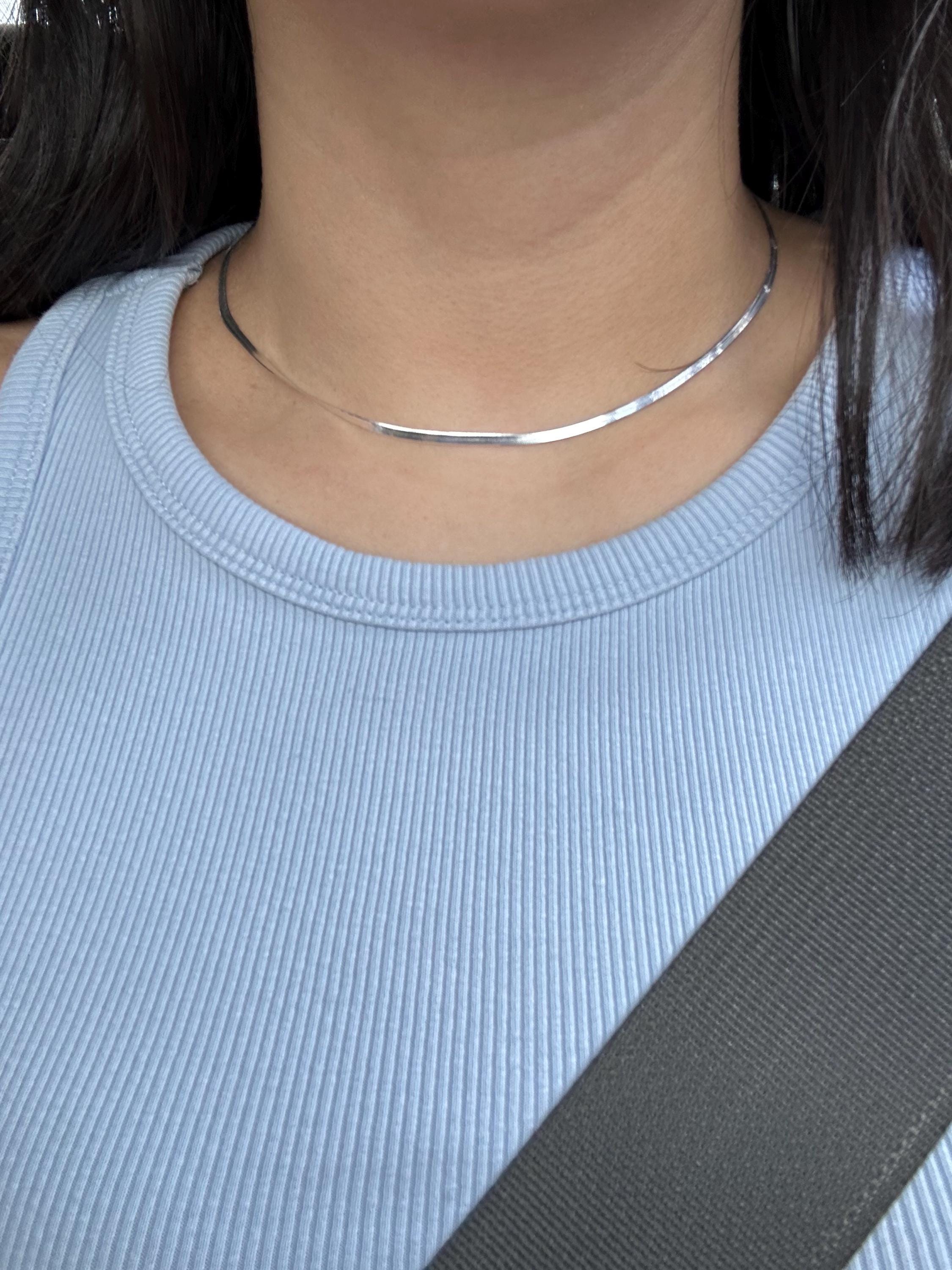 925 Solid Sterling Silver Flat Herringbone Snake Chain Necklace