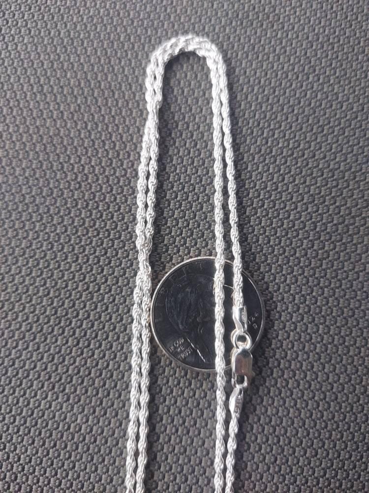 Solid 925 Sterling Silver 2MM Twisted Link Rope Chain Necklace