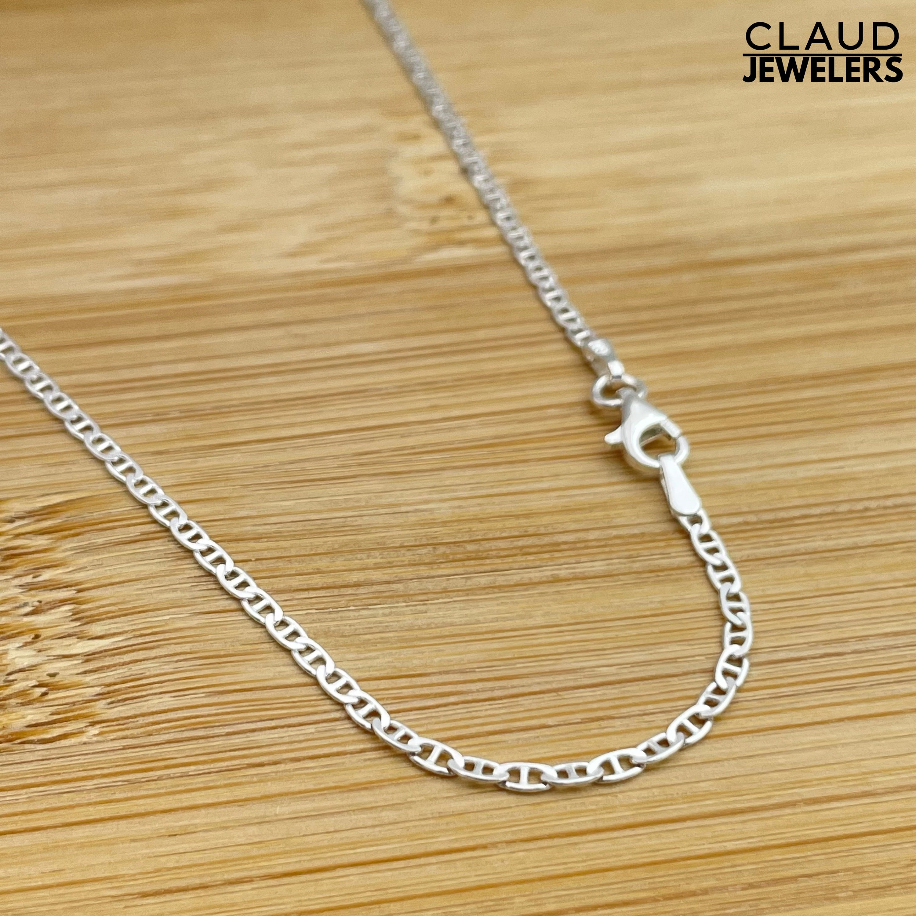 Solid 925 Sterling Silver 1.2MM Flat Marina Link Chain Necklace UNISEX Silver Necklace