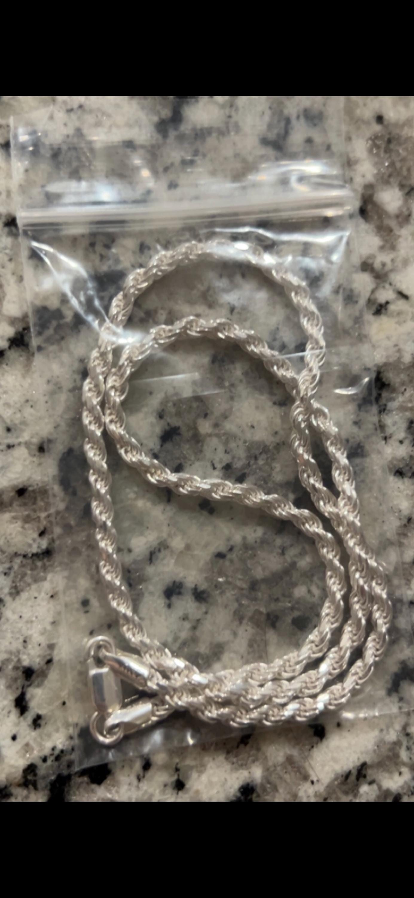 Italian Solid Sterling Silver 2.5MM Rope Link Chain Necklace 925 Silver Chain UNISEX